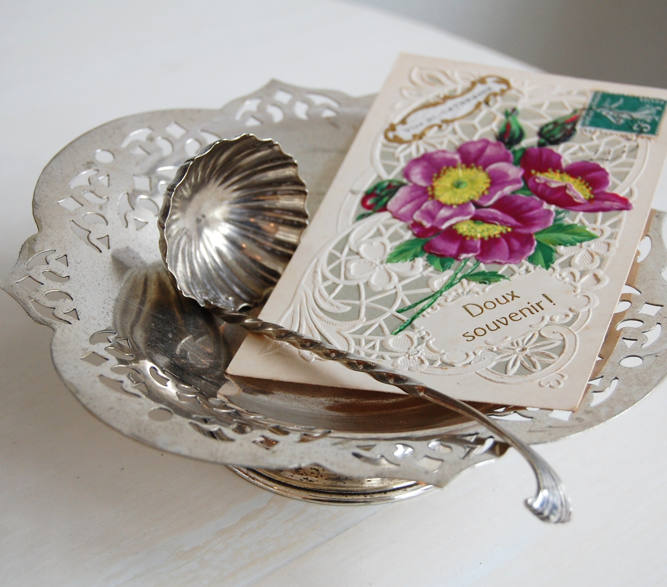 繊細なレースやリボン、デザインや色合いが可愛いボタン、針やハサミ、糸巻き・・などなど、アンティークのソーイング小物には心惹かれるものが多く、私も買い付けの度にそういった古いソーイングアイテムを買い集めています。